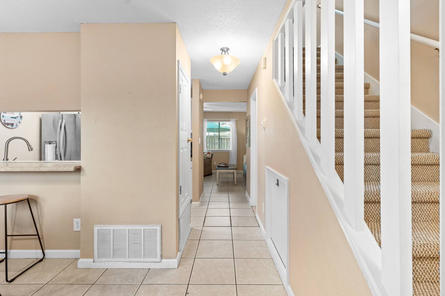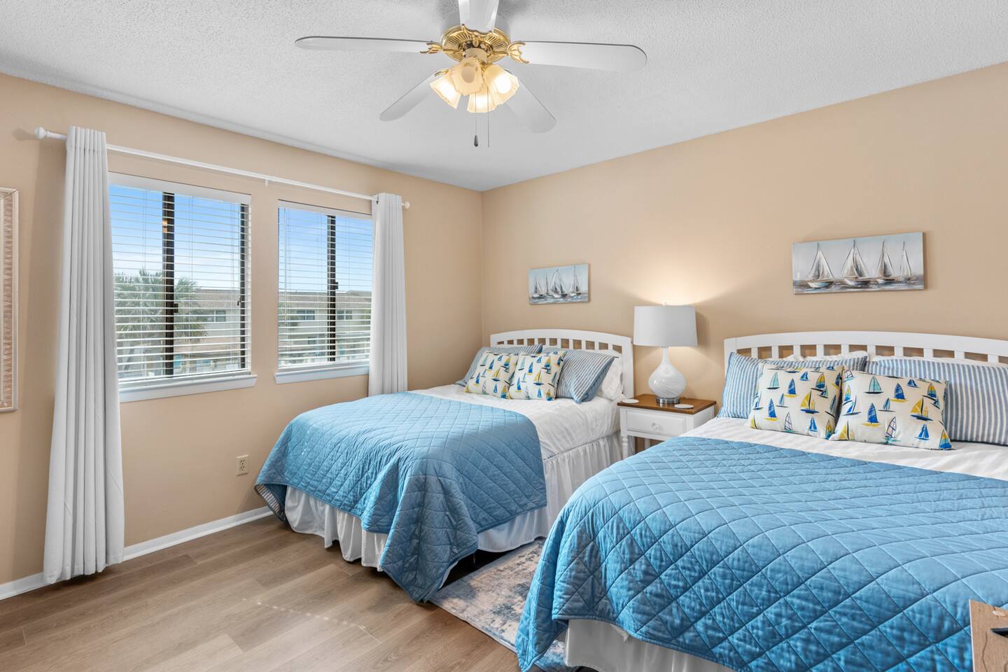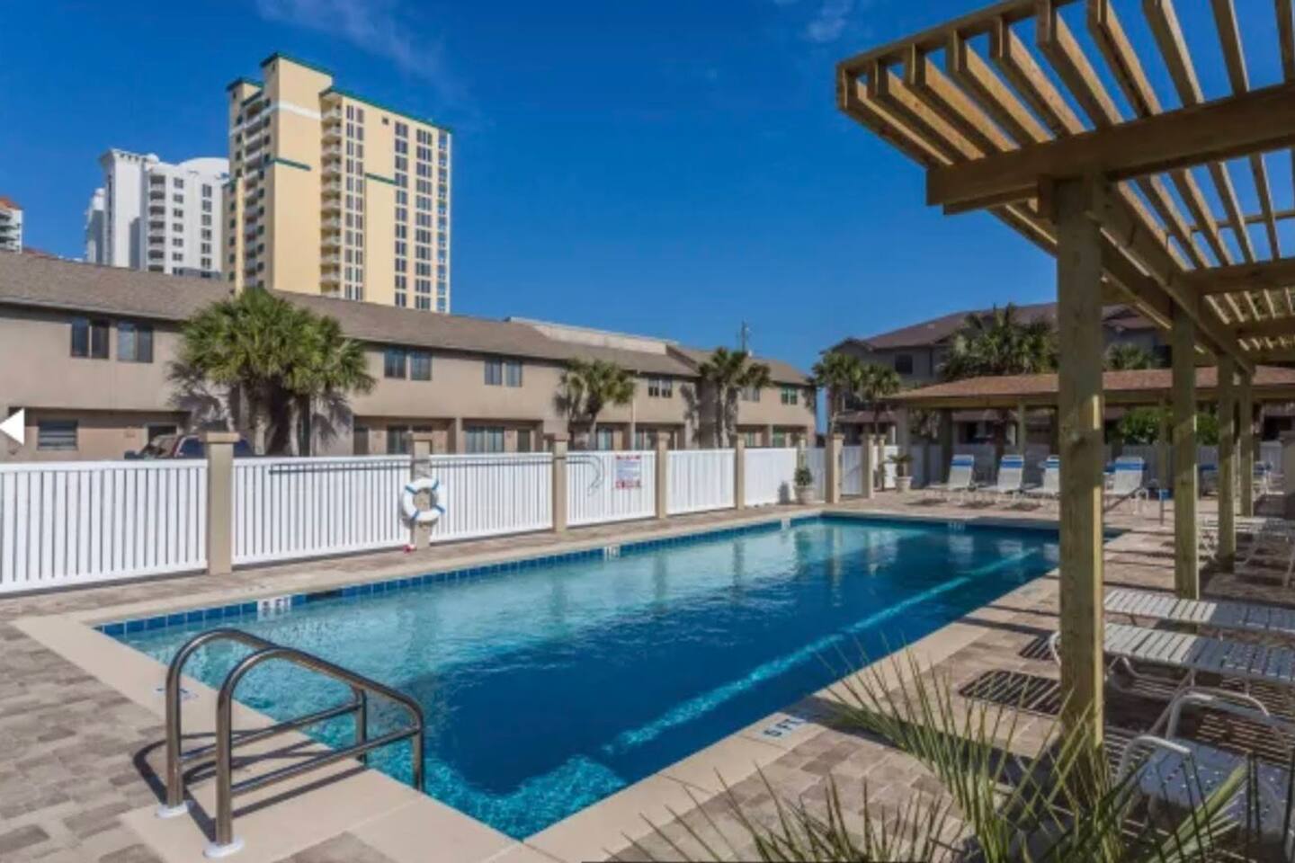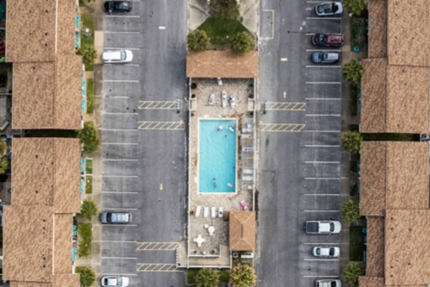 * 2 bedrooms, both upstairs, one with a king bed, and the other with two double beds * Roku TVs in both bedrooms for you to log into your streaming accounts and watch * Large bathroom with double sinks and shower/tub combo upstairs between the bedrooms * Full-sized washer and dryer, iron and ironing board, broom and dustpan, and a hand-held vacuum sweeper * Living room, dining room, kitchen, and half bath located downstairs * Queen size sleeper sofa in living room * Cable TV and comfy seating in the living room * Seating for 4 at the dining room table with additional bar seating * Outdoor dining table and chairs on the back patio * Kitchen stocked with dishes and silverware, stainless steel appliances, blender, waffle maker, slow-cooker, and two coffee makers, so bring along your favorite drip coffee or k-cups * Beach bag and beach towels provided for guests to use when visiting the beach or swimming pool * Beach chairs and umbrella provided for guests to use during their stay * Small supply of laundry detergent, dish detergent, trash bags, toilet paper, and travel-sized shampoo/ conditioner/ body wash and soaps is provided. Please plan to bring or purchase your own toiletries if you need extra. * Other amenities: Fast Wi-Fi, shared complex pool (seasonally heated), outdoor shower for rinsing off after a trip to the beach, and private back patio w/ charcoal grill.