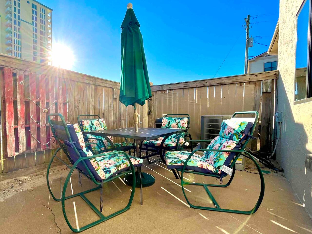 Beach towels are provided to take to the beach or pool. Please do not take the white bath towels outside of the house. Beach chairs and umbrellas are available to rent at the beach. Please do not take any of the patio/porch furniture from the house.